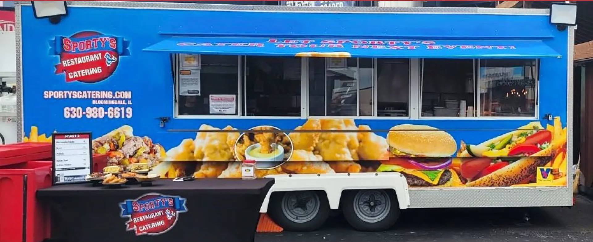 Call 630-980-6619 or email info@sportyscatering.com for more info or to book our food truck!